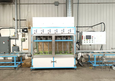 This area will be where any masking takes place, and the product is wiped down with an Kolorbond International LTD recommended cleaner. This area is primarily comprised of tables or dollies and is always located outside the spray booth itself. In the case of spraying lineals, the masking rack would be loaded in this location.Ideally this area will include a sink where paint preparation and gun cleaning will also take place.